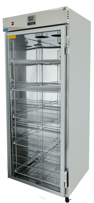 The Nuline BW650 is a high-capacity blanket warmer designed to safely and efficiently maintain warmth for up to 30–35 blankets. Featuring a fan-forced system for even heat distribution, this model ensures reliable performance with a digital microprocessor controller, overheating alarm, and safety cutoff at 70°C for enhanced protection. Its robust stainless steel interior and exterior, complemented by chrome-plated shelves and double-glazed glass doors, provide durability and easy visibility. The BW650 is ARTG registered (No. 257613), making it ideal for hospital and clinical environments requiring precise temperature control.